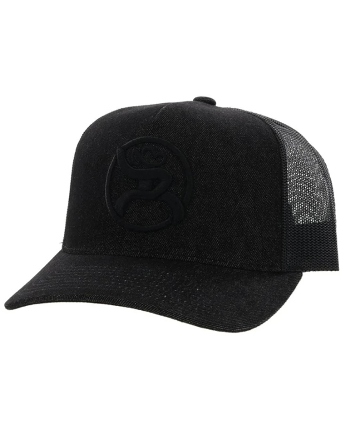 - Allover black with black circle logo patch on front